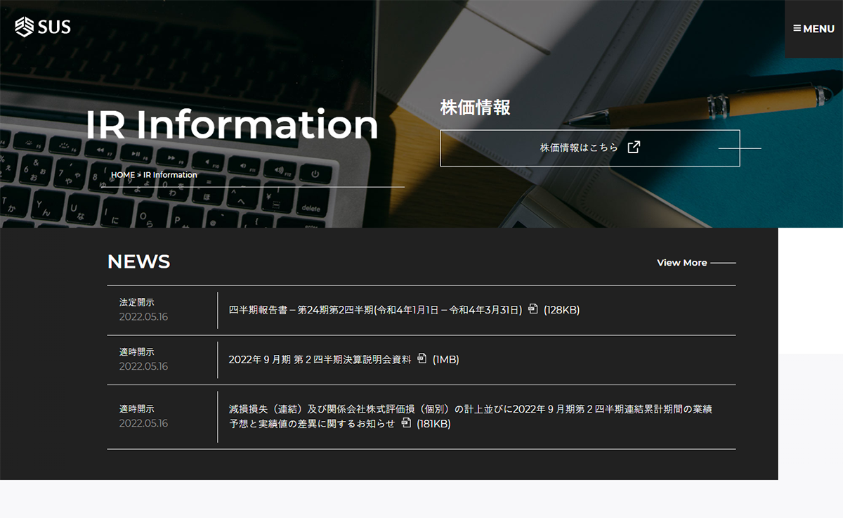 また、IR情報をご覧になる方が多く株式関連情報についての情報整理やデザイン調整などもご要望いただきました。